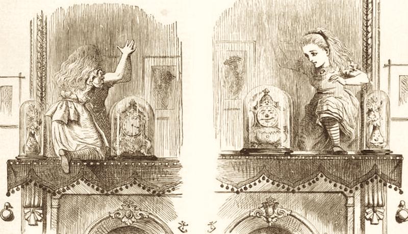 "Oh, Kitty! how nice it would be if we could only get through into Looking-glass House! I'm sure it's got, oh! such beautiful things in it! Let's pretend there's a way of getting through into it, somehow, Kitty. Let's pretend the glass has got all soft like gauze, so that we can get through. Why, it's turning into a sort of mist now, I declare! It'll be easy enough to get through–" She was up on the chimney-piece while she said this, though she hardly knew how she had got there. And certainly the glass was beginning to melt away, just like a bright silvery mist. In another moment Alice was through the glass, and had jumped lightly down into the Looking-glass room. — Through the Looking-Glass, And What Alice Found There, by Lewis Carroll, 1871